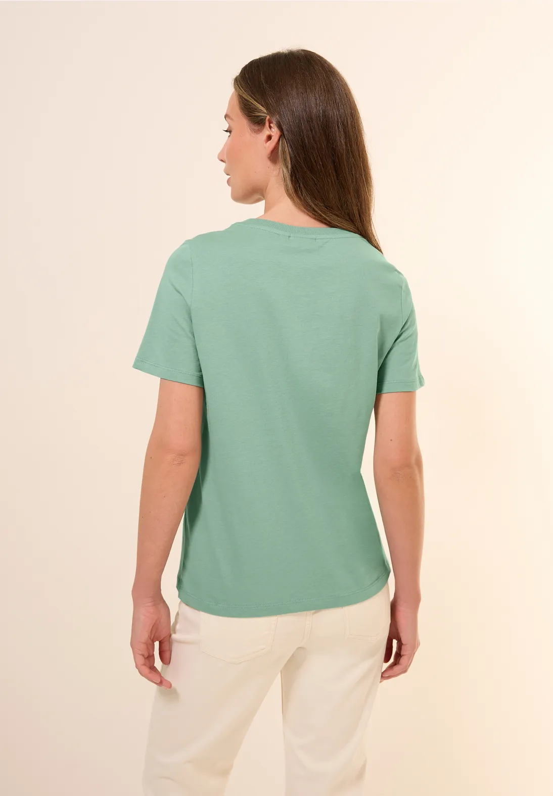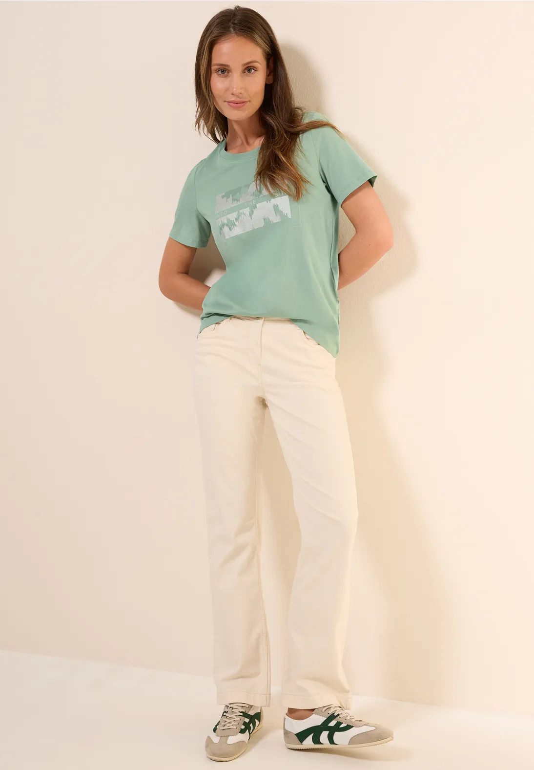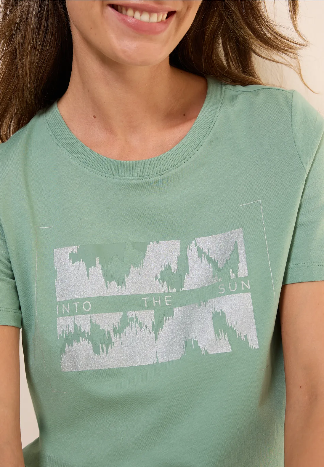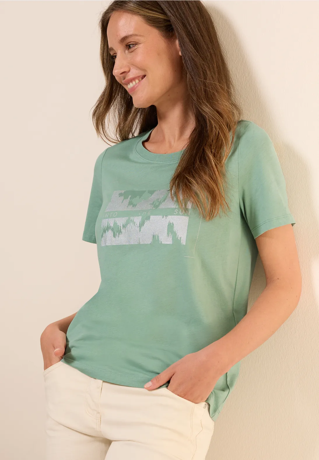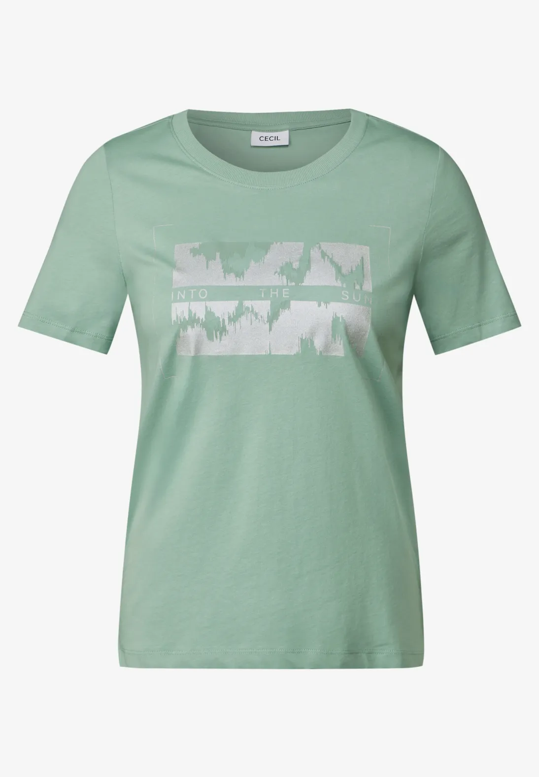 Cecil shirt met korte mouwen, een ronde hals en een glinsterende folieprint. Dit Cecil shirt is gemaakt van zuiver katoen.