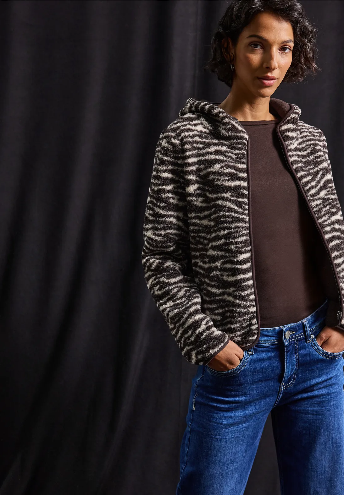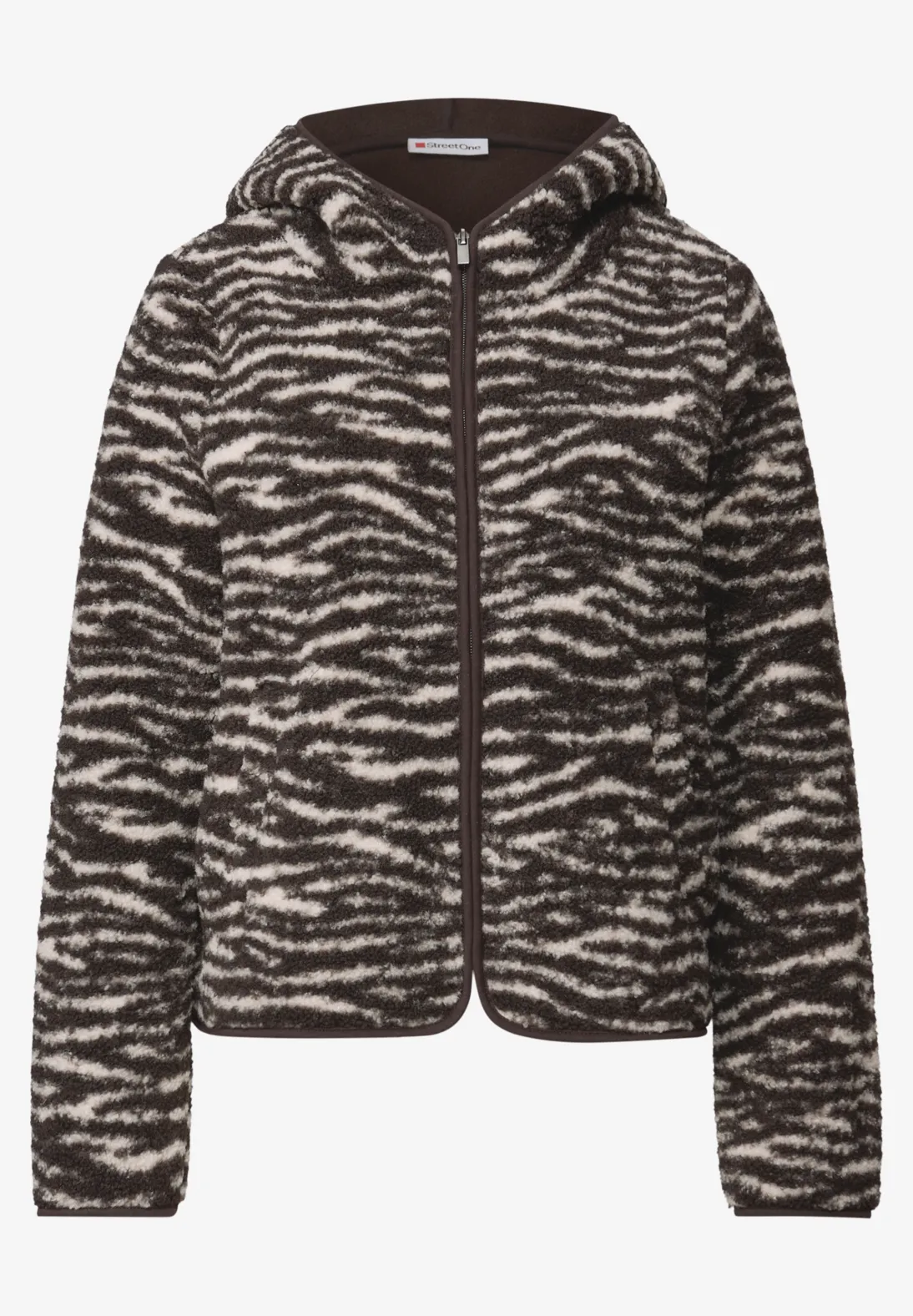 Street One teddyjas met een capuchon, steekzakken en een trendy dierenprint. Dit Street One jasje is gemaakt van zachte, warme teddystof.