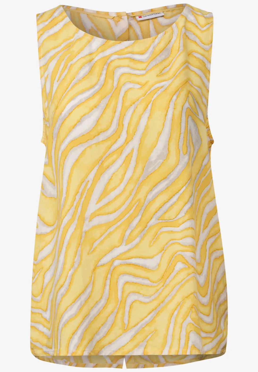 Mouwloze Street One blousetop met een ronde hals, grafische print en een knoopsluiting op de achterkant.