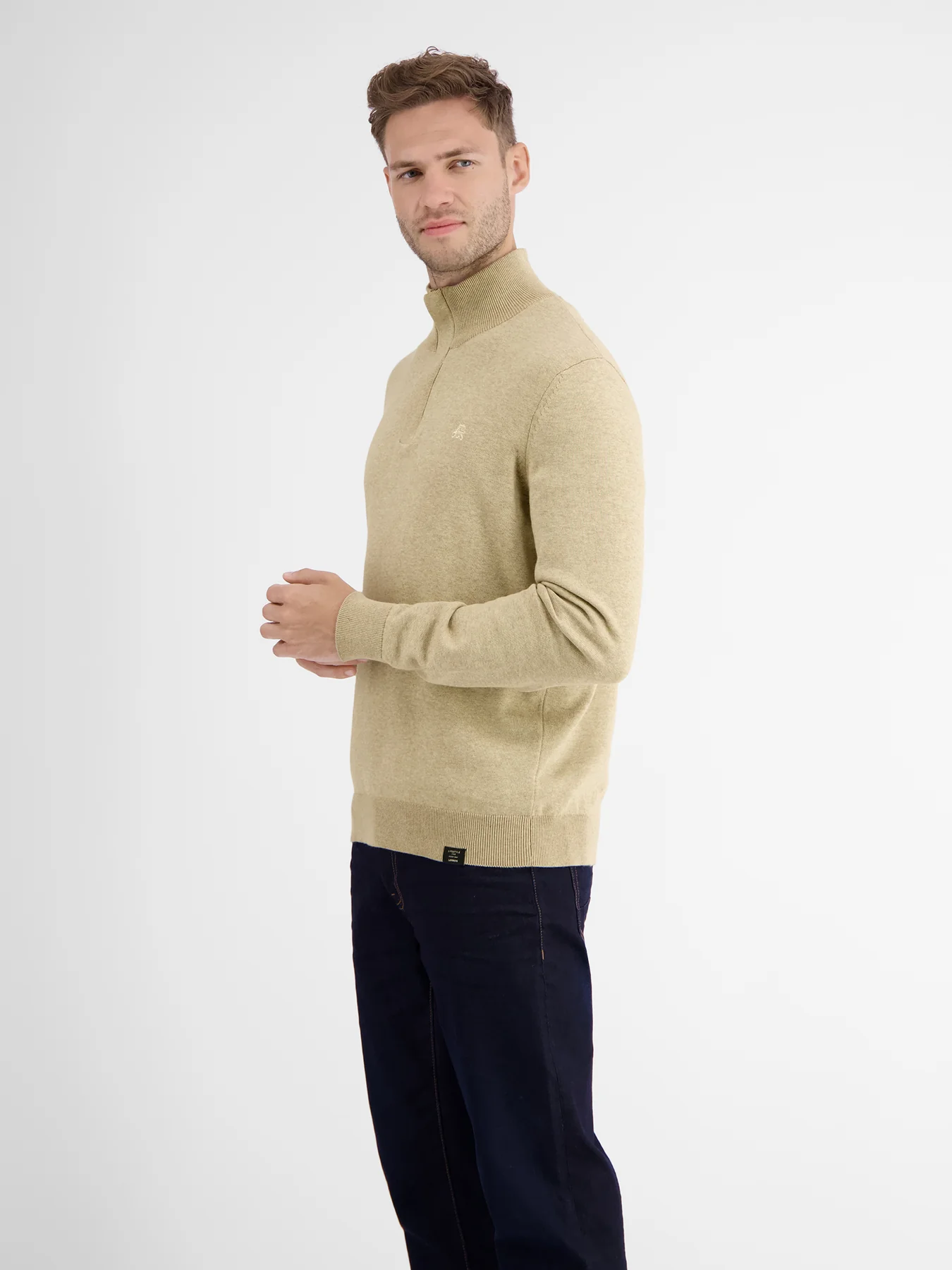Gebreide Lerros trui met lange mouwen en een staande kraag met een ritssluiting. De sportieve ribboorden maken deze Lerros trui compleet.