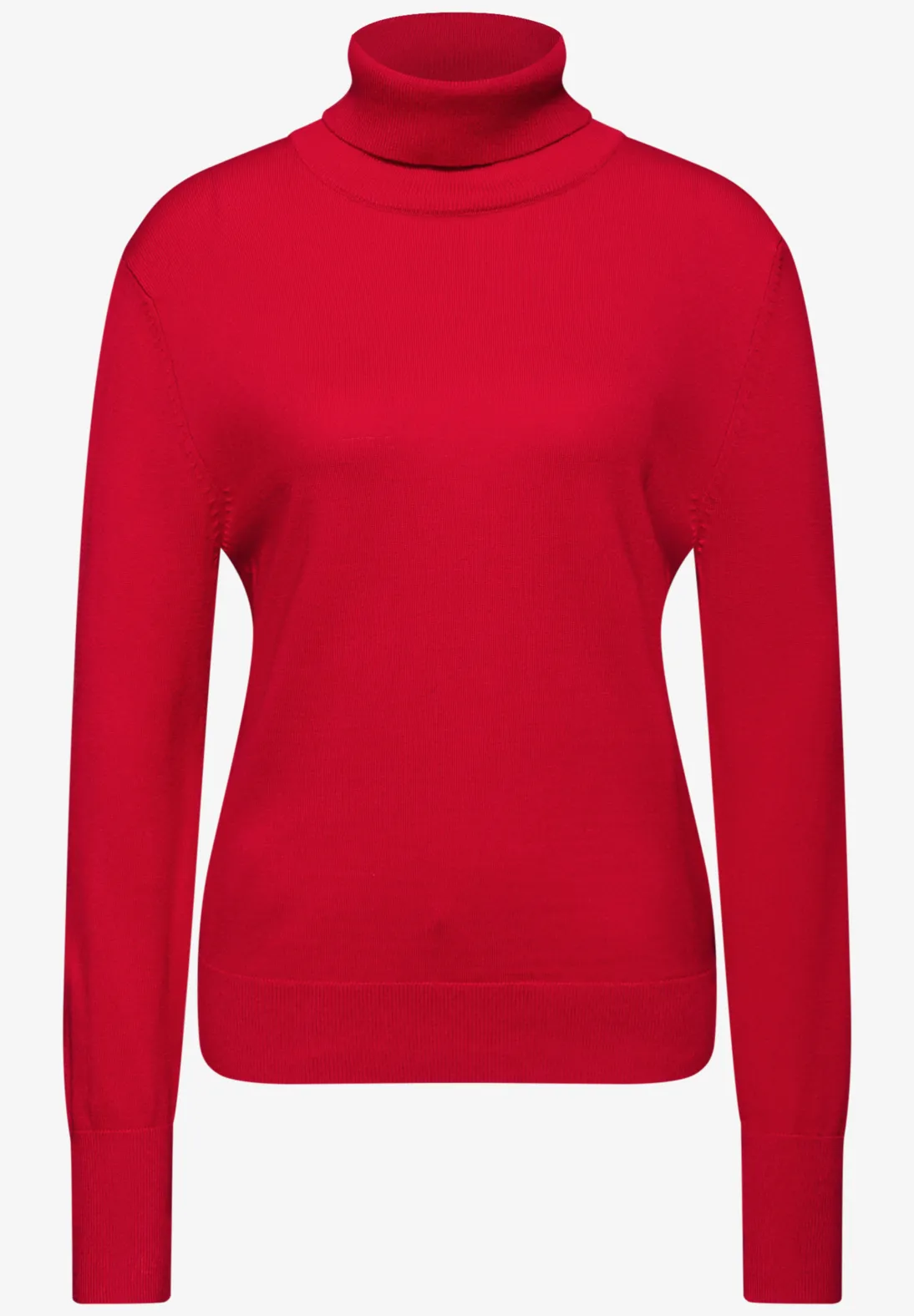 Ontdek de perfecte combinatie van klassieke elegantie en comfort met deze opvallende Street One coltrui voor dames in Racing Red. Deze gebreide trui is een absolute must-have die kleur en warmte toevoegt aan de koudere maanden.