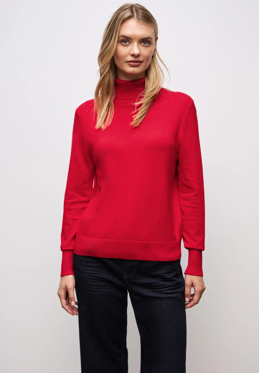 Gemaakt van een heerlijk zachte viscosemix, voelt deze trui superzacht aan op de huid en biedt hij de hele dag door aangenaam draagcomfort. De col houdt je behaaglijk en warm, terwijl de lange mouwen de trui compleet maken als een veelzijdig basisstuk dat een krachtig statement maakt in elke winterlook. De levendige kleur Racing Red garandeert dat je opvalt!