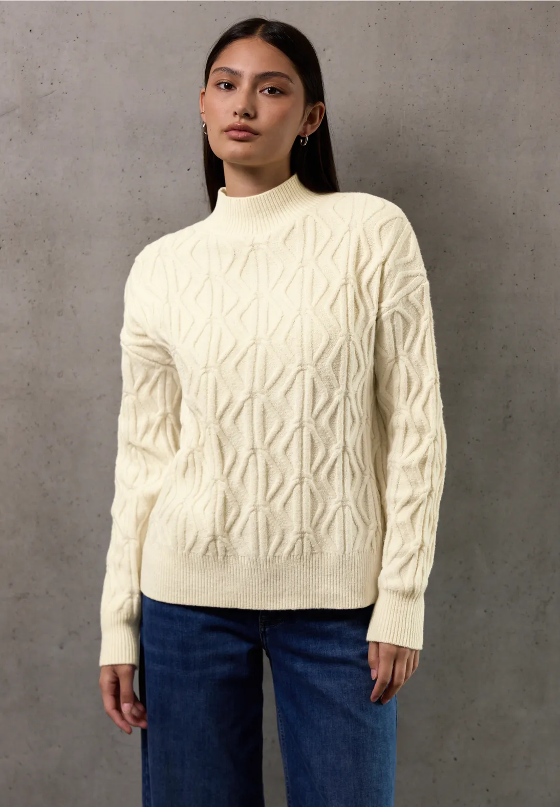 Denim/JeansRokken/JurkenVesten/TruienJassen/MantelsBlazersBeschrijvingTrui met Gebreid Patroon - Soft Beige