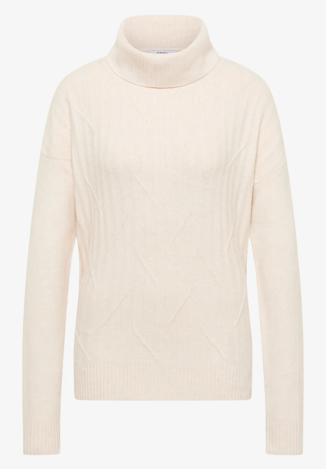 Ontdek de CECIL dames coltrui in light greige – een must-have voor stijlvolle en comfortabele winterdagen. Deze gebreide trui is gemaakt van een zacht breisel met een fijn structuurpatroon en biedt een behaaglijk gevoel dankzij de hoge colkraag en geribde boorden. Perfect te combineren met jeans of een rok voor een moderne, casual look. De mix van nylon, polyacryl, katoen en elastaan zorgt voor optimale pasvorm en draagcomfort.