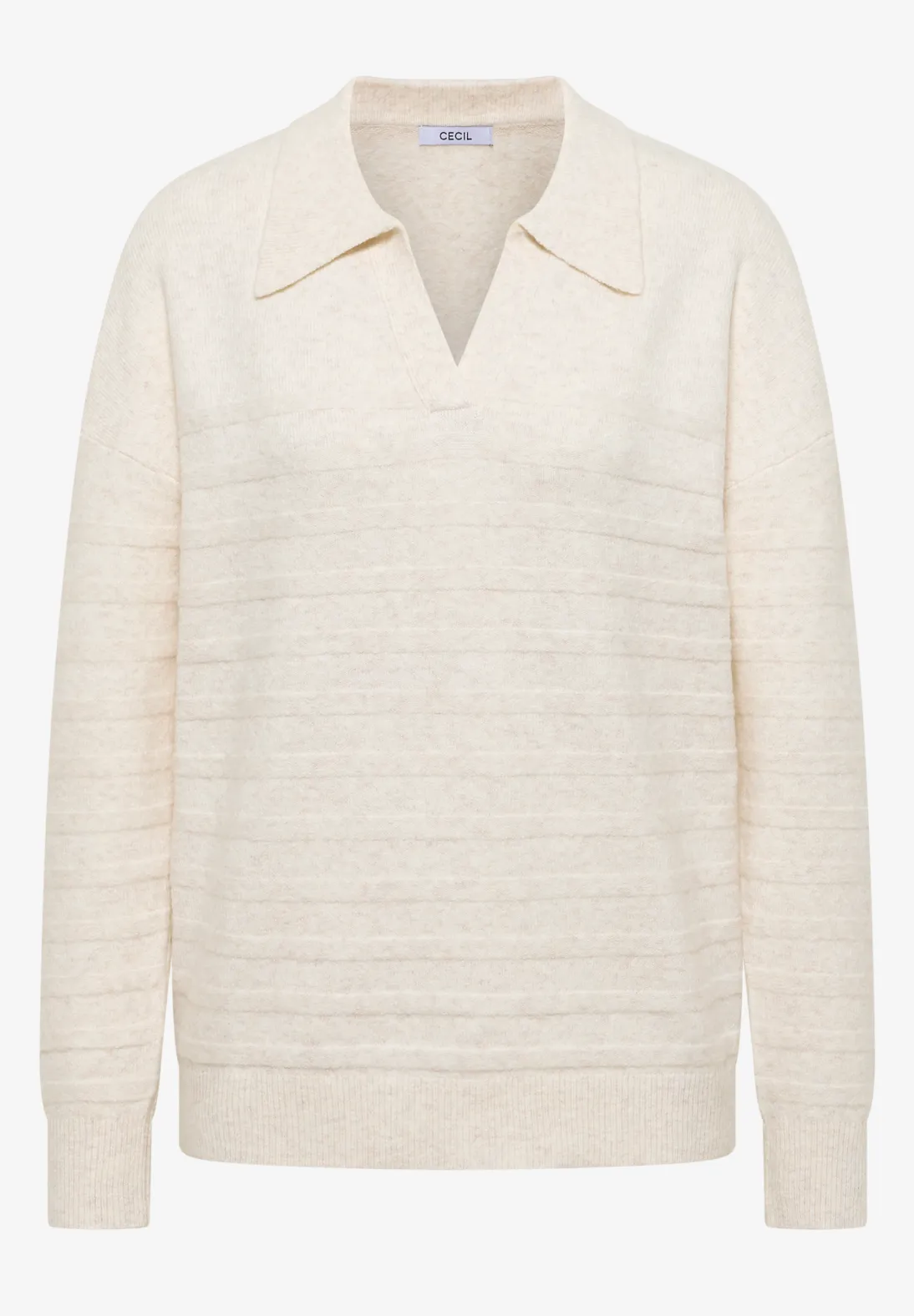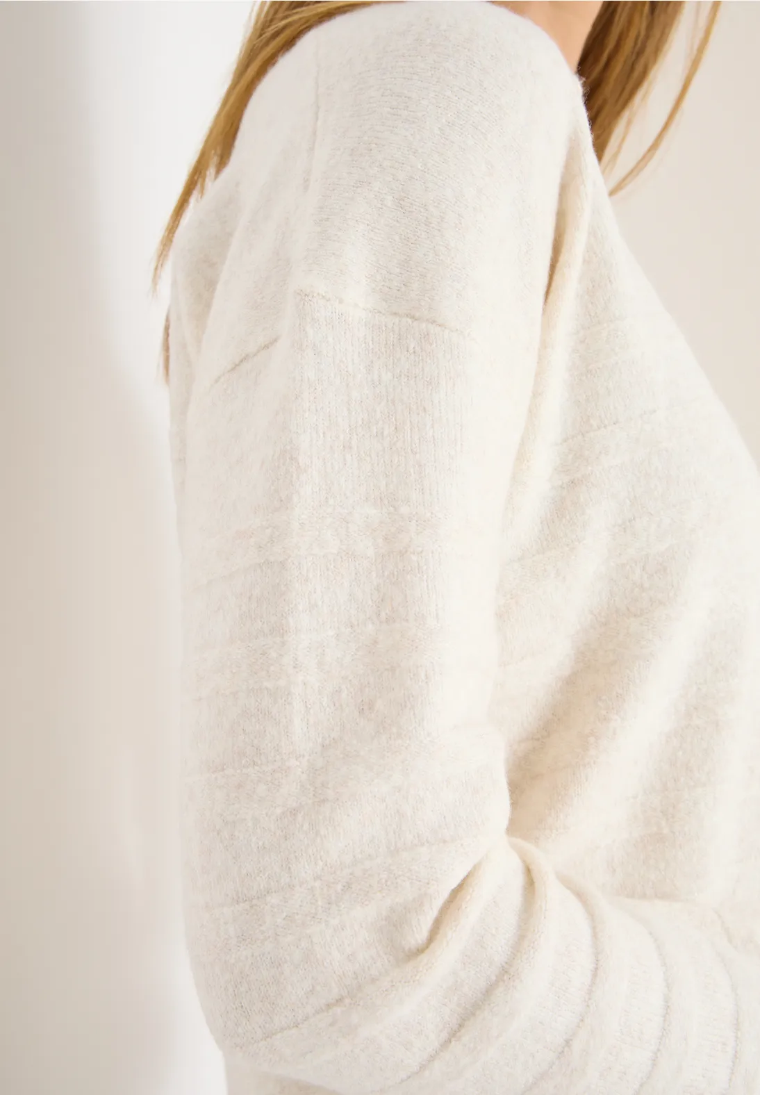 Denim/JeansRokken/JurkenVesten/TruienJassen/MantelsBlazersBeschrijvingTrui met Zachte Structuur - Oat Milk Beige Melange