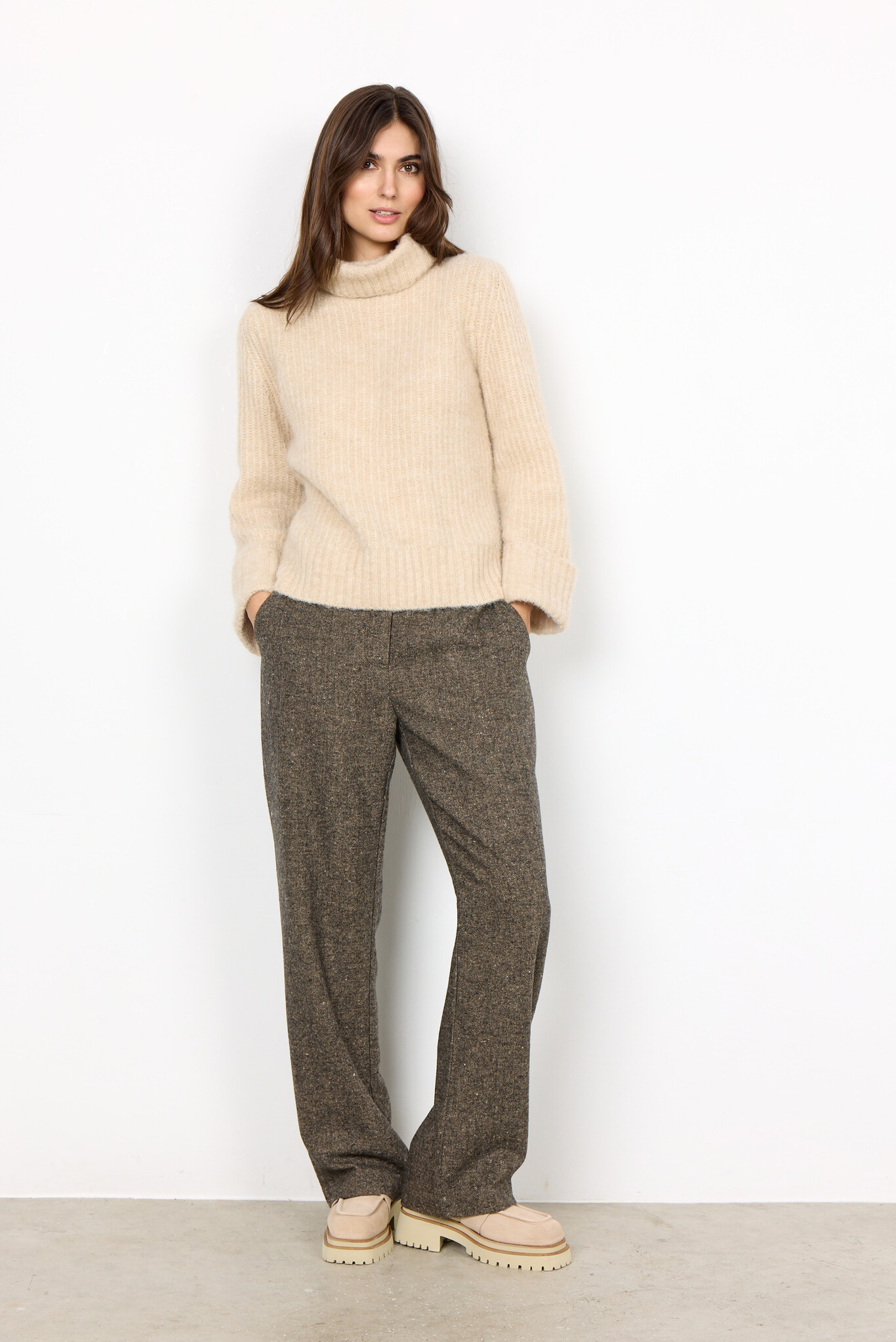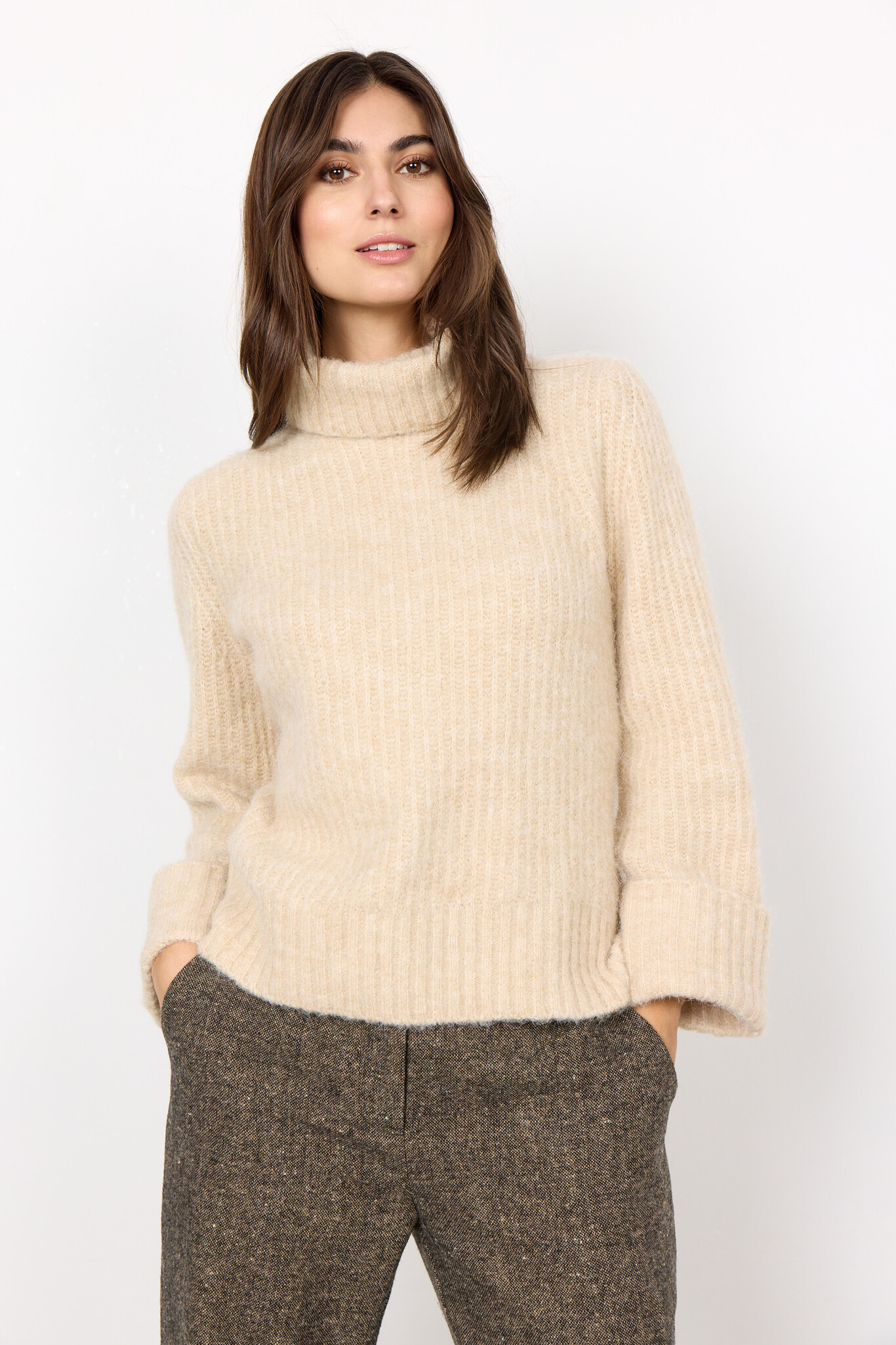 Soyaconcept SC-Torino 4. Soyaconcept trui met lange mouwen met omslag, een col en loose fit. Deze Soyaconcept trui is gemaakt van een zacht breisel.