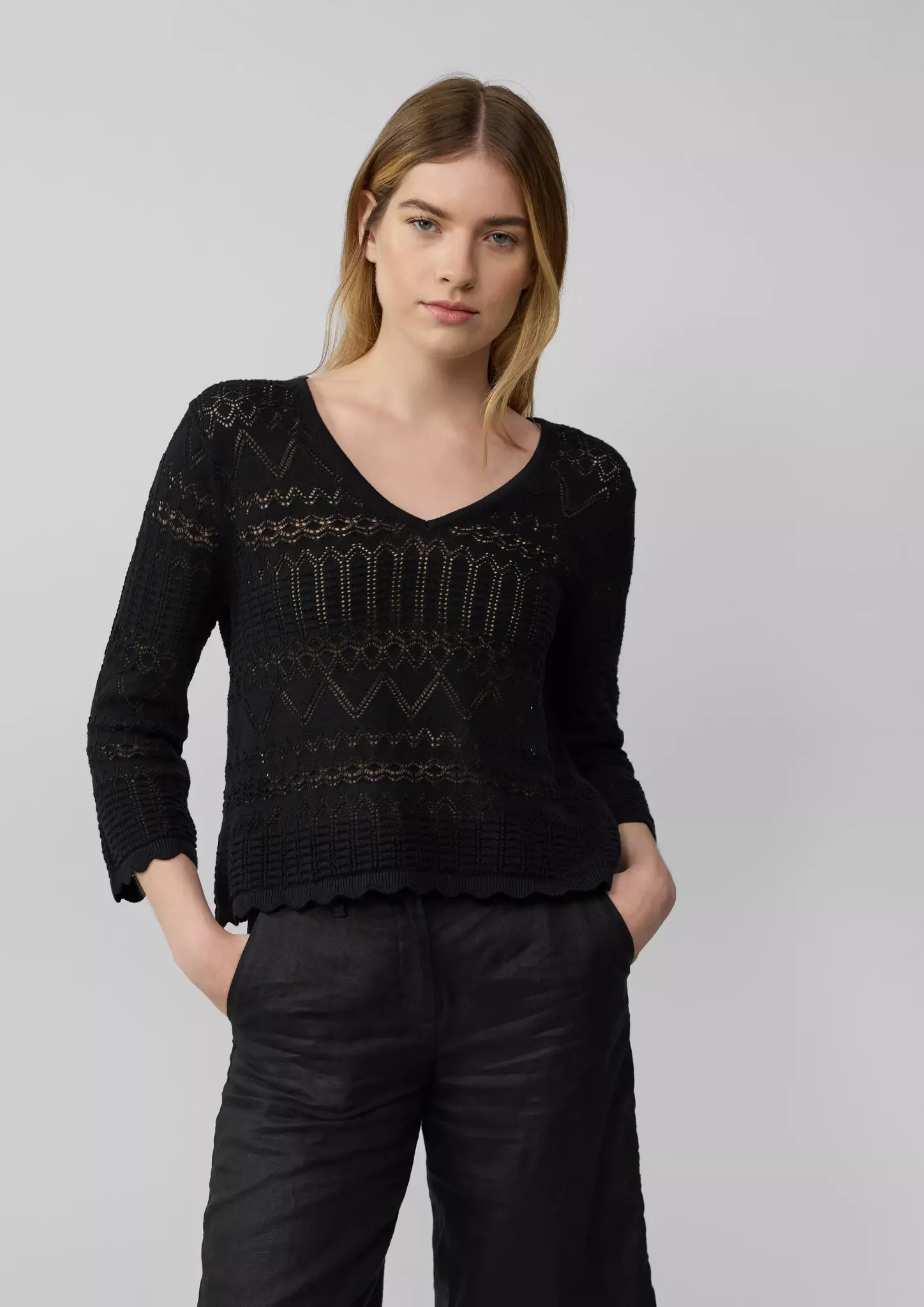 S. Oliver trui met 3/4-mouwen, een V-hals en een ajour breisel. Deze S. Oliver trui is gemaakt van zuiver katoen.