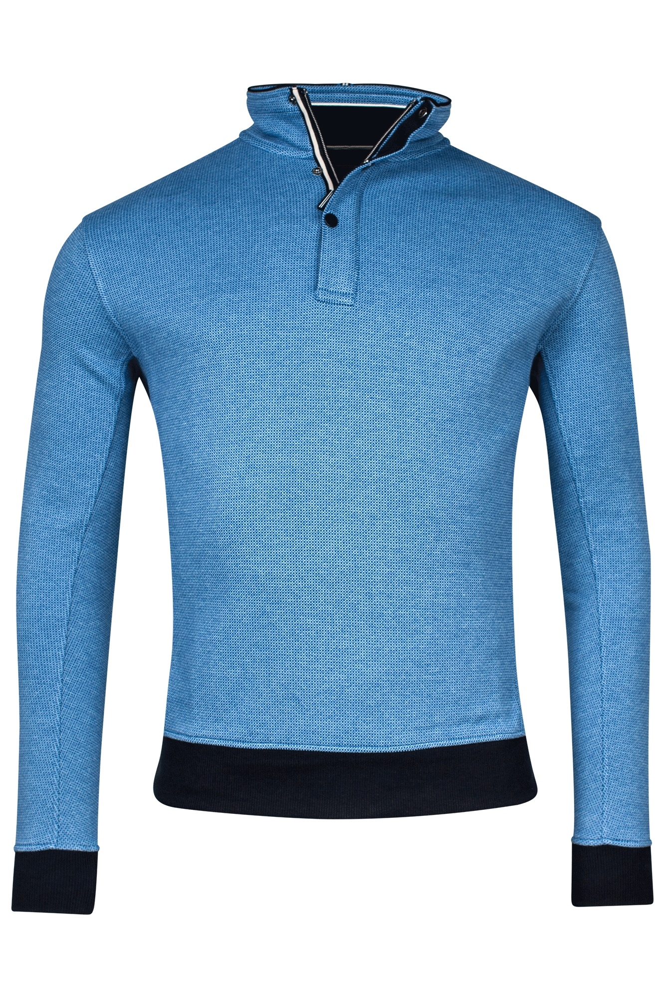 Baileys heren trui met een staande kraag met rits en sportieve ribboorden. Deze Baileys trui is gemaakt van comfortabel sweatmateriaal.