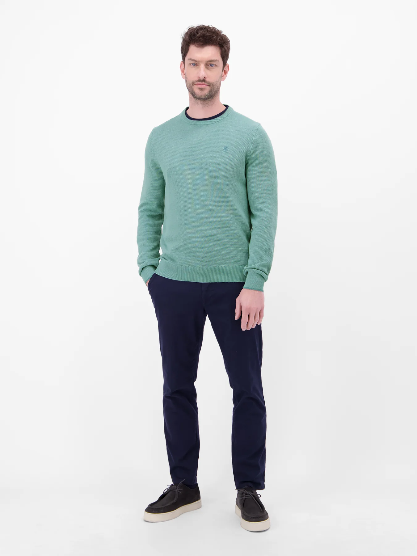 Deze LERROS trui in Arctic Blue combineert sportieve stijl met maximaal comfort. De tweekleurige look en geribbelde boorden geven de trui een klassieke, gestructureerde uitstraling. Met de regular fit is deze trui veelzijdig te combineren met verschillende broeken en outfits. Gemaakt van 100% katoen, is het een duurzaam en gemakkelijk te onderhouden basisitem voor dagelijks gebruik of in de vrije tijd.