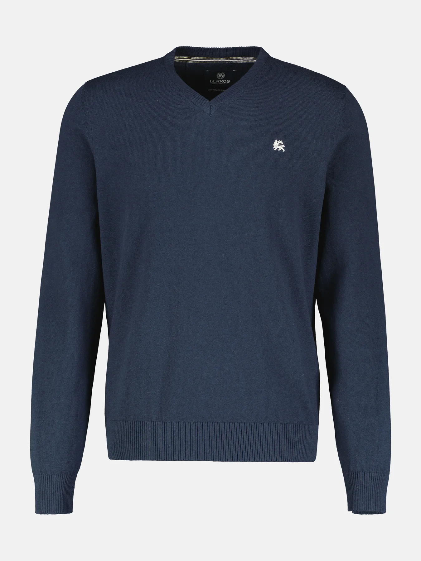 Lerros pullover met V-hals. Deze basic Lerros trui heeft sportieve ribboorden en is gemaakt van een lichte brei kwaliteit met kasjmier.