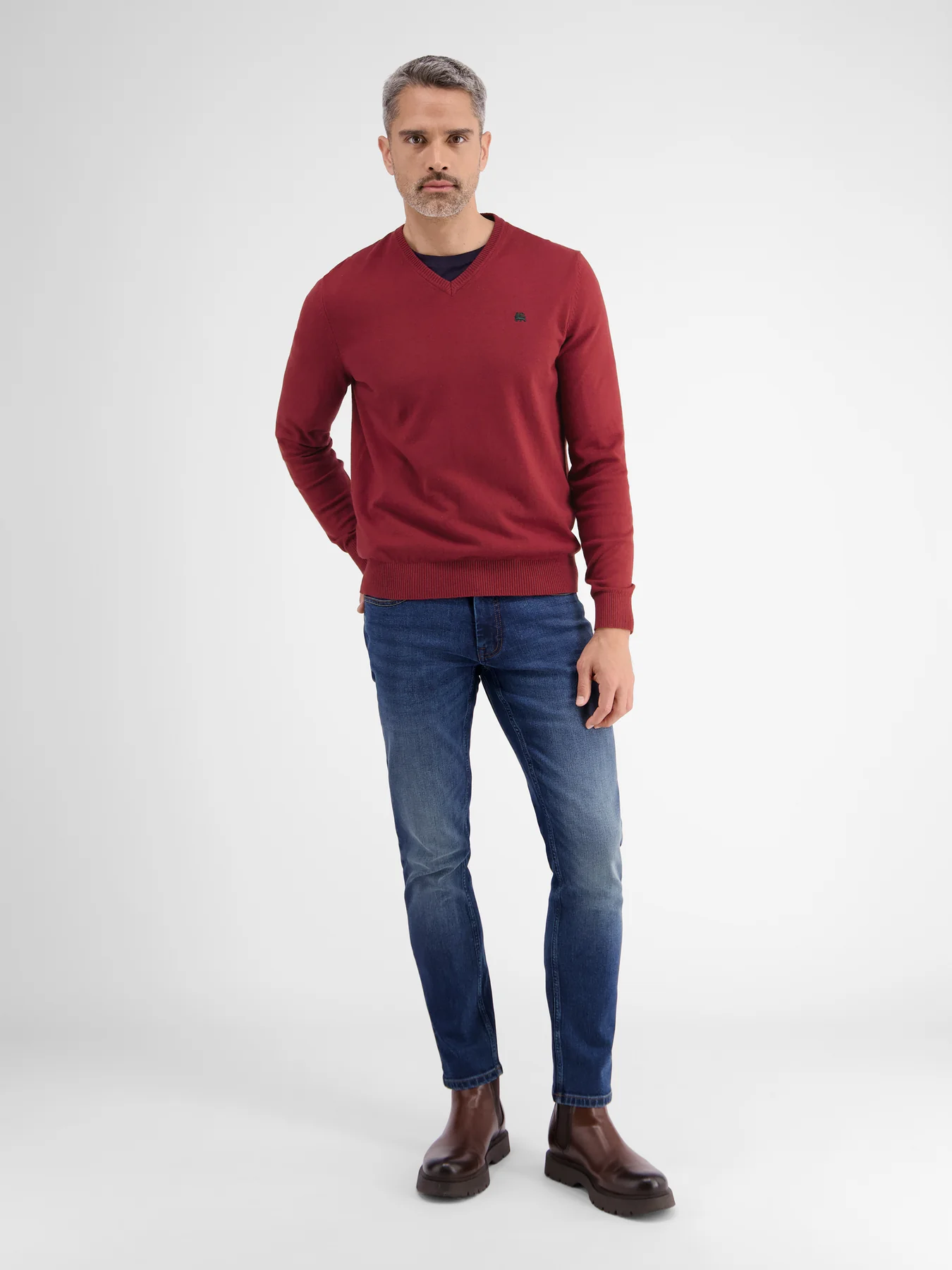 Lerros pullover met V-hals. Deze basic Lerros trui heeft sportieve ribboorden en is gemaakt van een lichte brei kwaliteit met kasjmier.