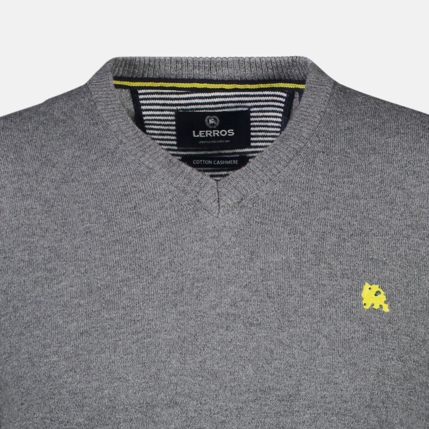 Lerros pullover met V-hals. Deze basic Lerros trui heeft sportieve ribboorden en is gemaakt van een lichte brei kwaliteit met kasjmier.