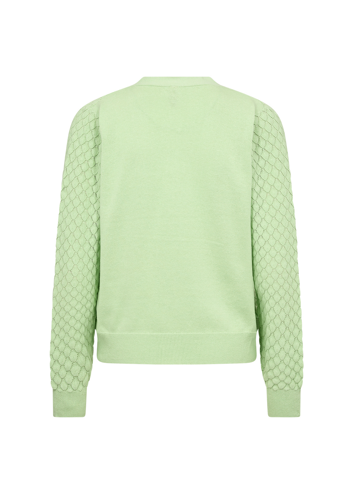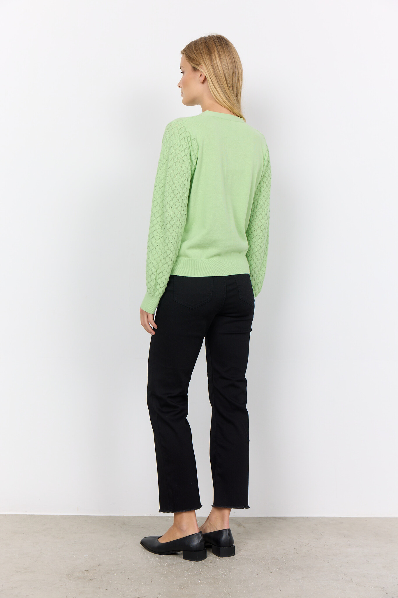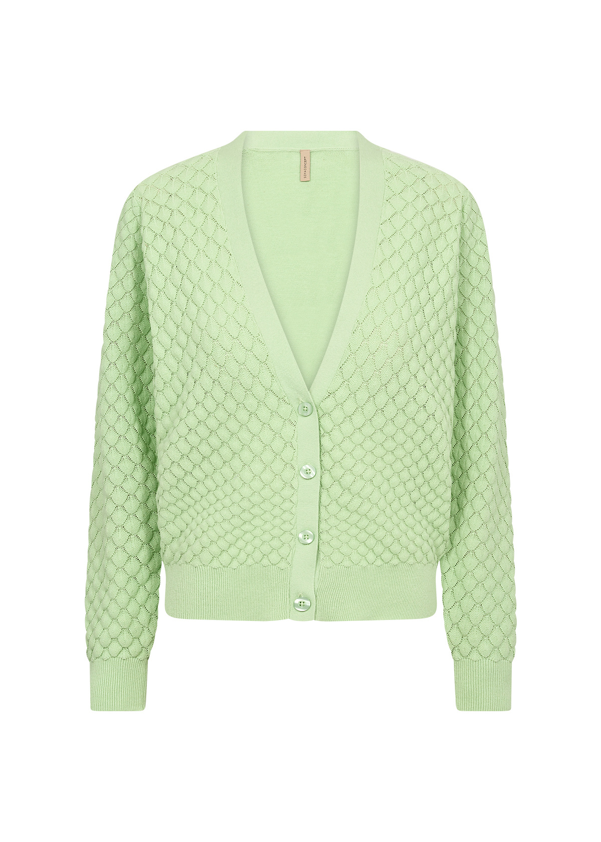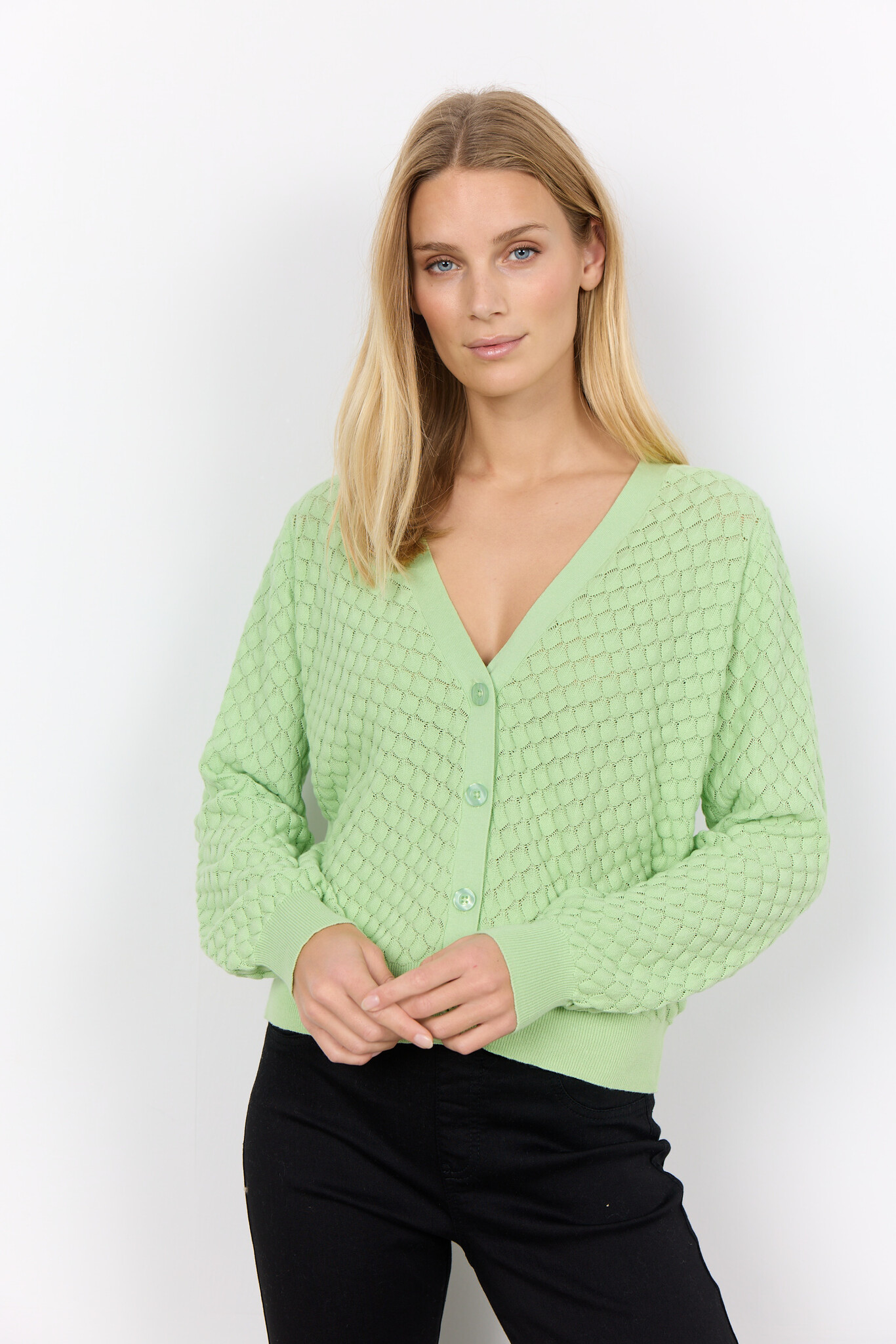 Soyaconcept SC-Amela 2. Soyaconcept vestmet lange mouwen, een V-hals en geweven patroon op de mouwen en voorkant. Dit Soyaconcept vest wordt gesloten met een knoopsluiting.