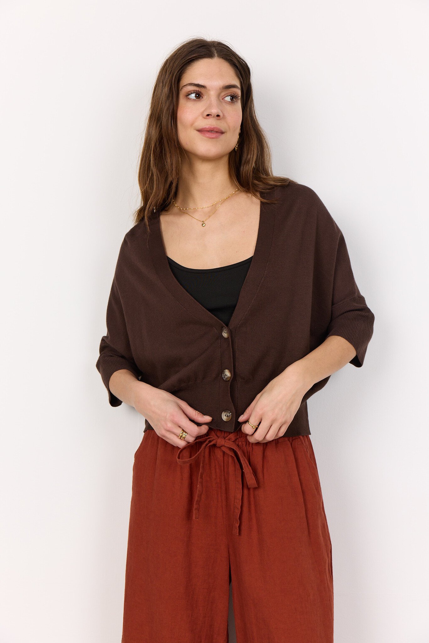 Soyaconcept SC-Dollie 712. Soyaconcept vestje met 3/4- mouwen, een V-hals en een knoopsluiting. De 3/4-mouwen zijn afgewerkt met een ribboordje. Leuk bij zowel een jurk, top of rok!