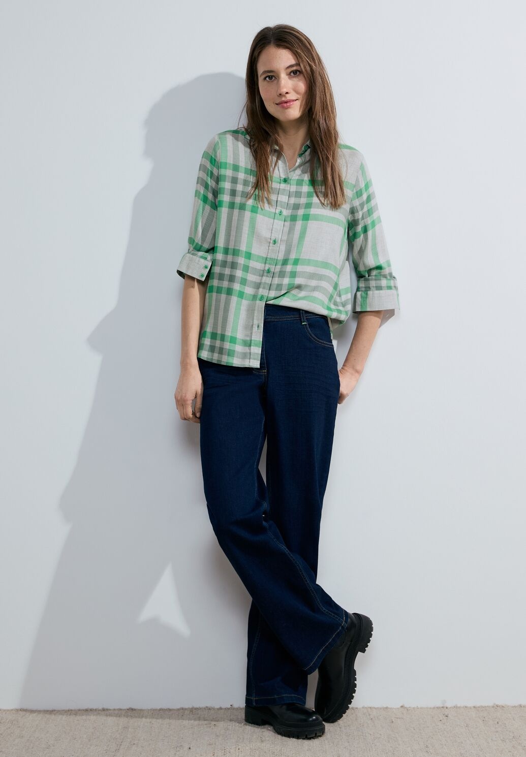 Cecil blouse met lange turn-up mouwen, een kraag en een ruitprint. Deze Cecil blouse heeeft een lange knoopsluiting en is gemaakt van zachte viscose.