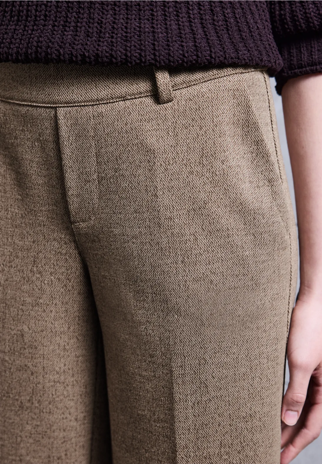 Wide Leg damesbroek in gemêleerde Rustic Brown Melange