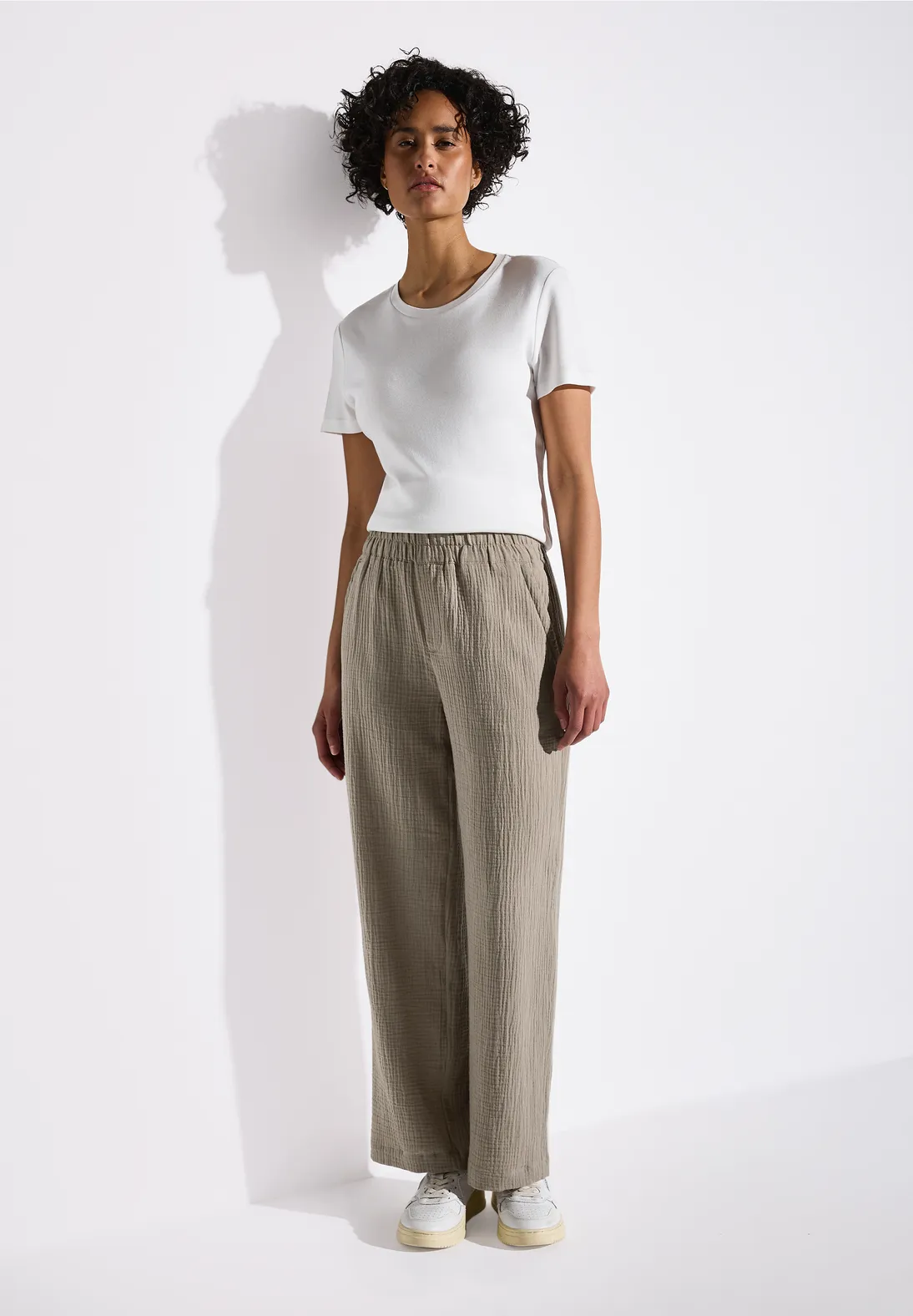 Street One broek met een loose fit, hoge taille en wijde broekspijpen. Deze Street One broek heeft steekzakken en is gemaakt van zuiver katoen.