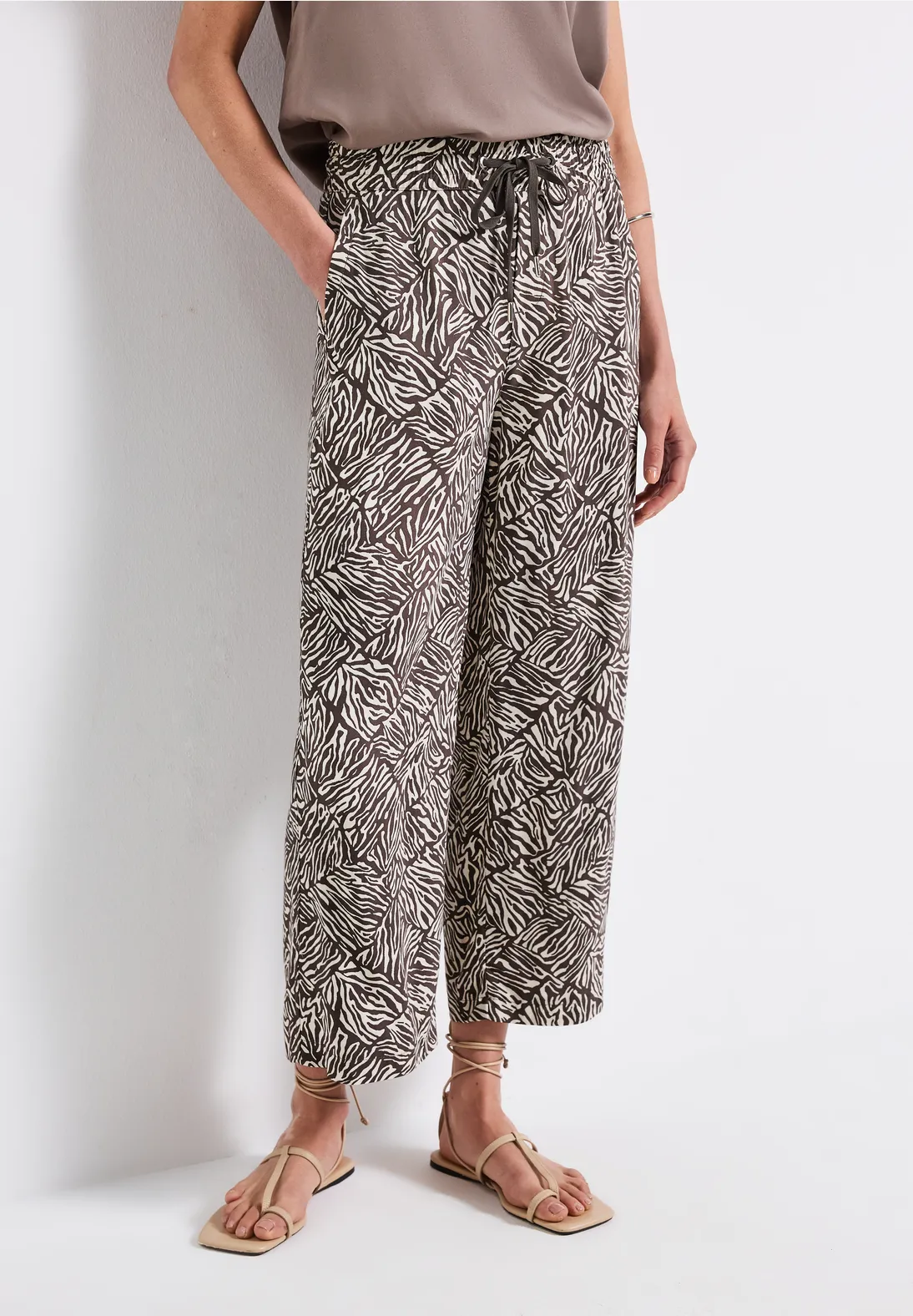 Street One Emee. Street One broek met een loose fit, een hoge elastische tailleband met trekkoord en wijde pijpen in een zomerse lengte. Deze Street One broek heeft steekzakken aan de zijkant en een allover print. Gemaakt van een zachte viscose kwaliteit.