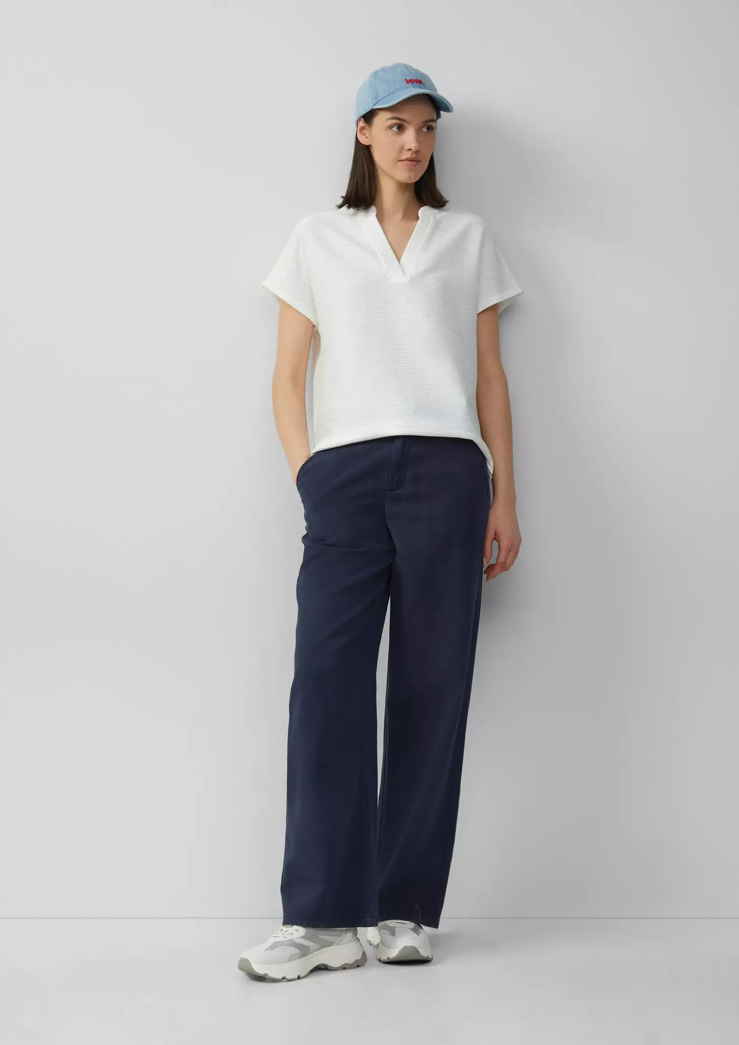 Zacht S.Oliver T-shirt met korte mouwen, oversized schouders en een V-hals. Dit S. Oliver shirt heeft een relaxed fit en een modieuze structuur.