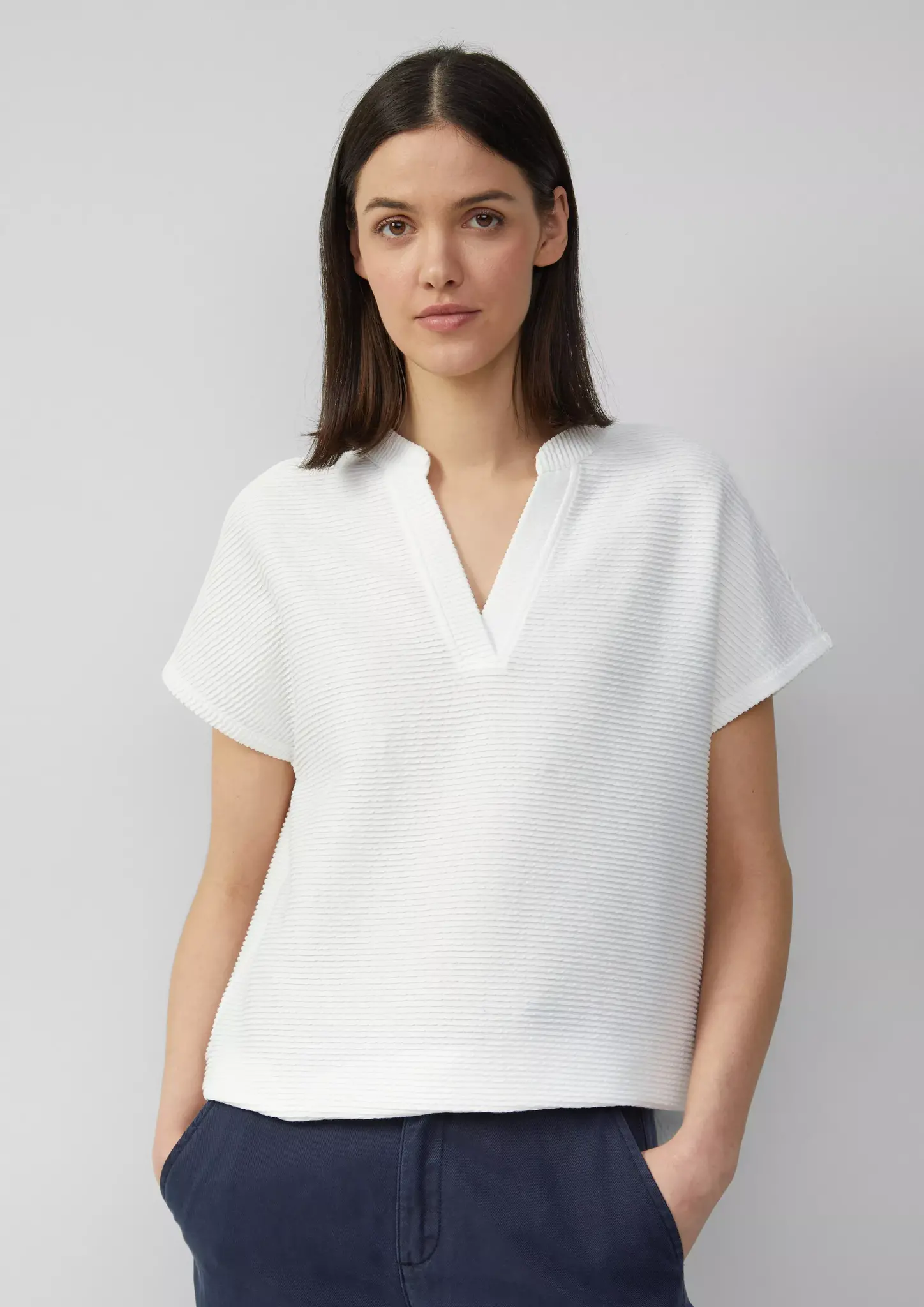 Denim/JeansRokken/JurkenVesten/TruienJassen/MantelsBlazersBeschrijvingZacht T-Shirt met Structuur - Ecru