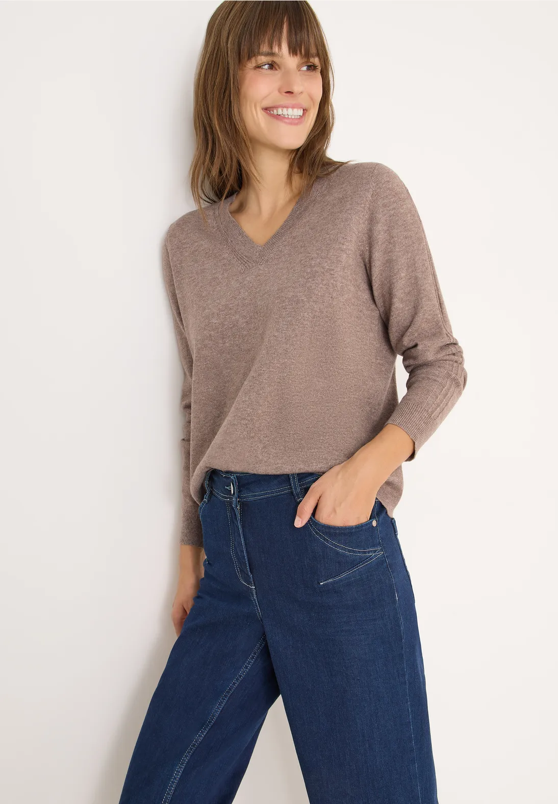 Denim/JeansRokken/JurkenVesten/TruienJassen/MantelsBlazersBeschrijvingZachte Trui met V-hals - Chocolate Mousse Melange
