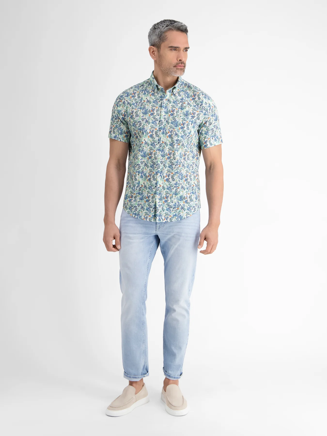 Lerros overhemd met korte mouwen, een button-down kraag en zomerse bloemenprint.
