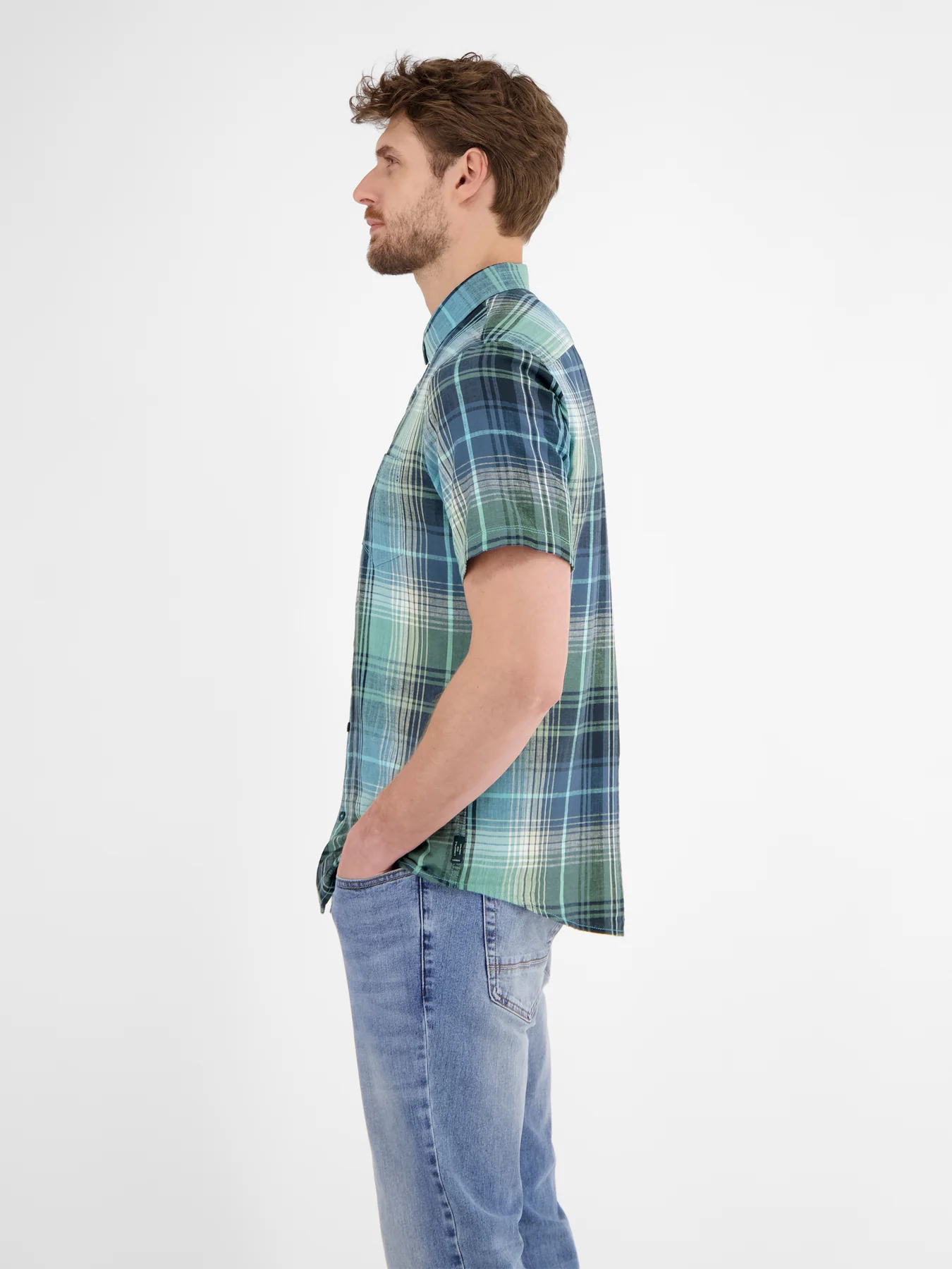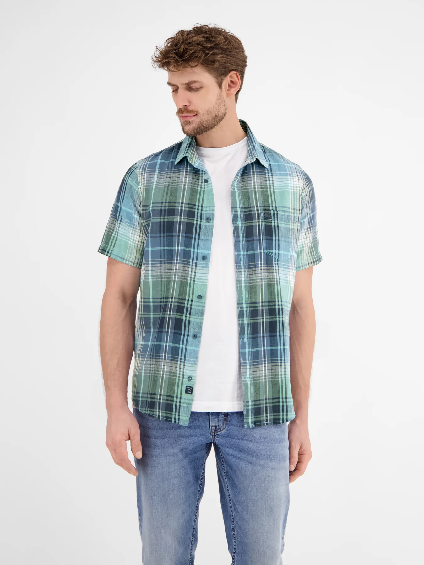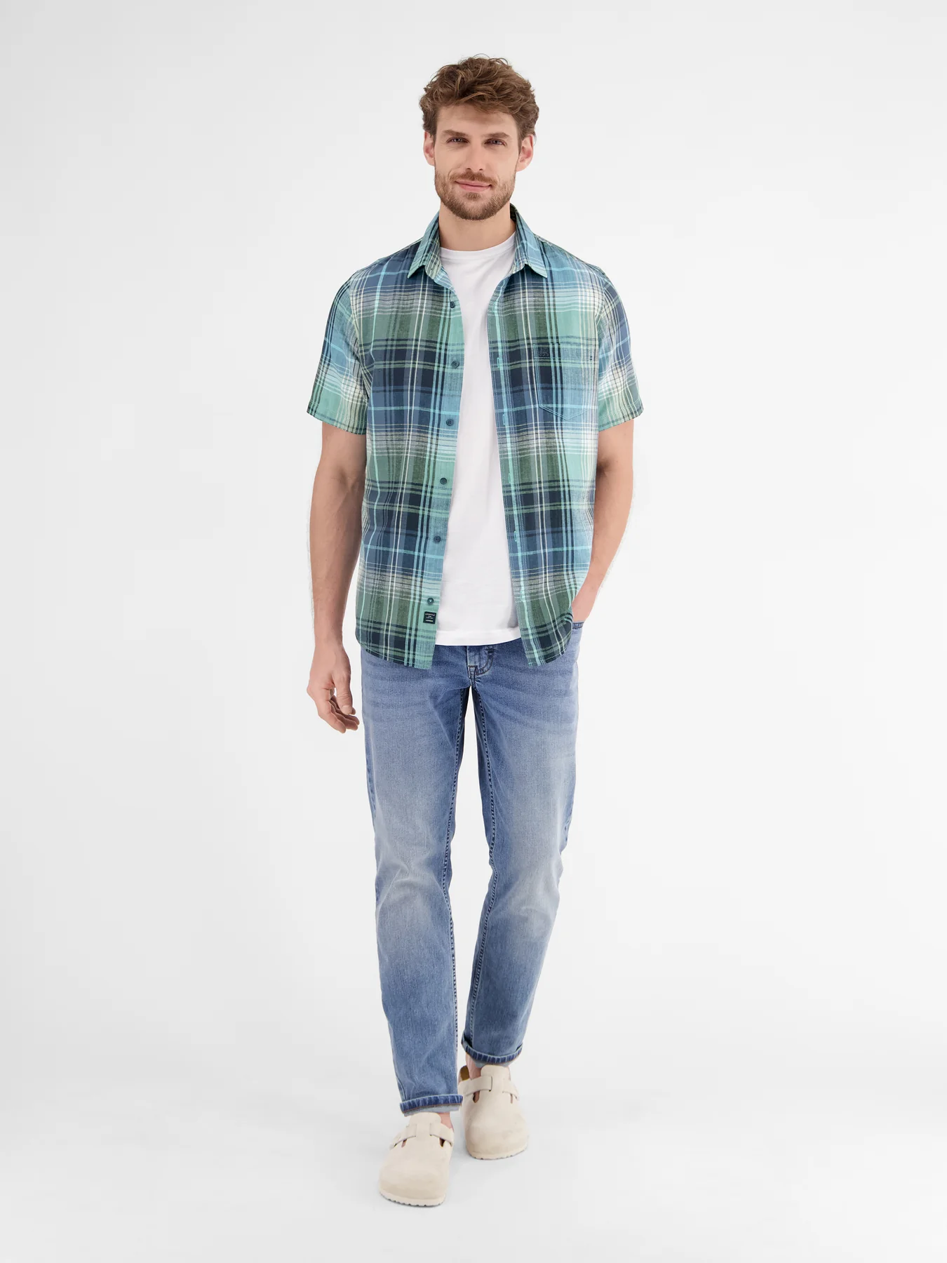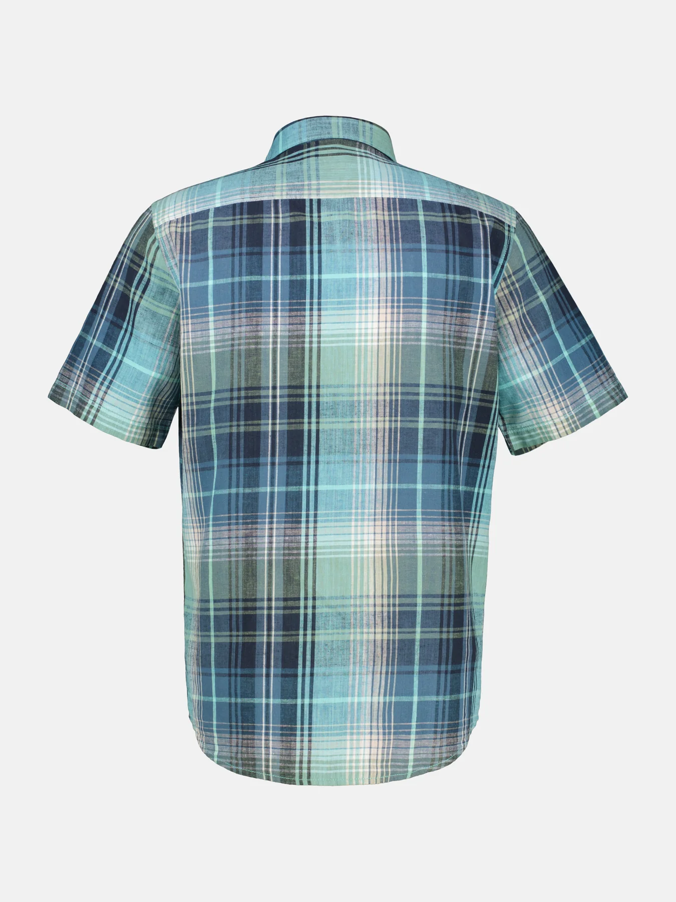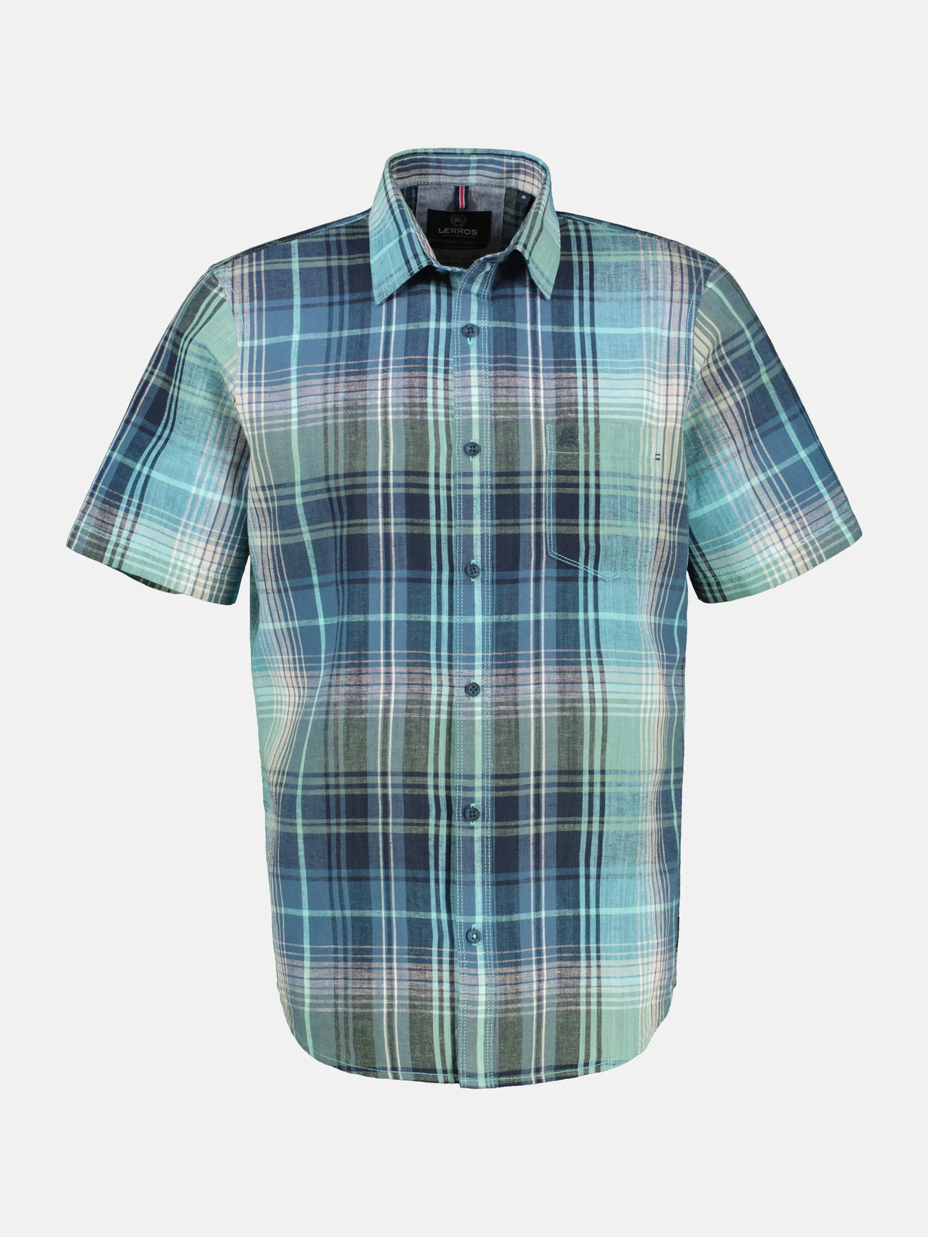 Lerros overhemd met korte mouwen, een kent kraag en zomerse ruit print. Gemaakt van een zomerse katoen-linnenmix.