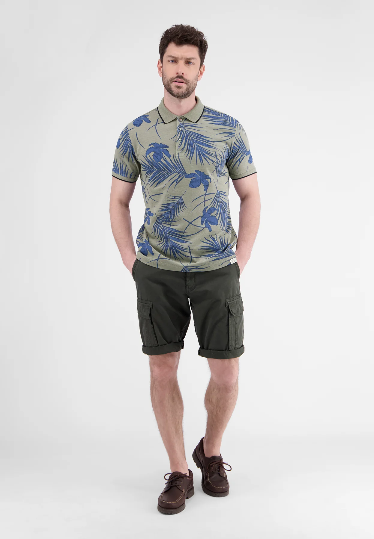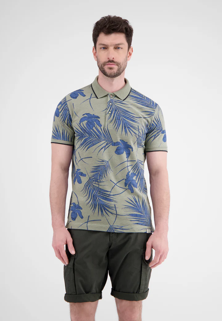 Lerros poloshirt met korte mouwen, een allover print en een kraag met knoopsluiting. Dit Lerros poloshirt is gemaakt van een zachte piquékwaliteit