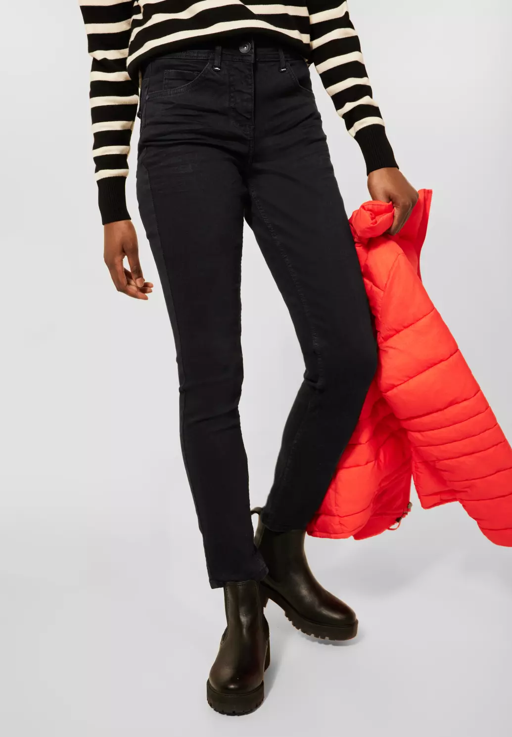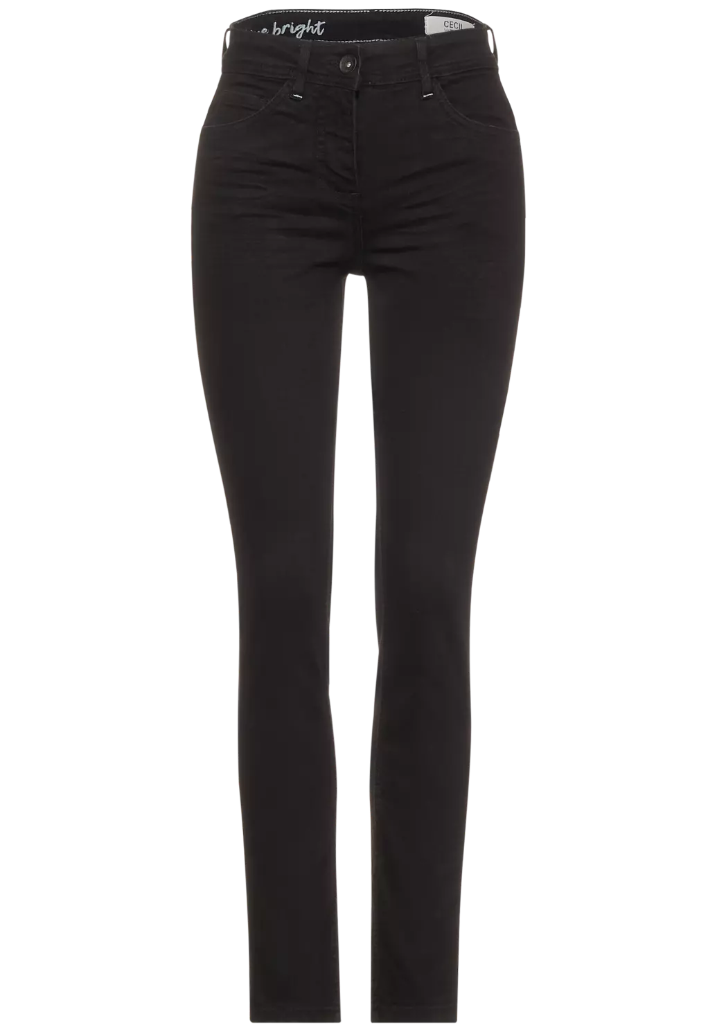 Cecil Toronto. Cecil jeans met een slim fit, hoge taille en smalle broekspijpen. Deze Cecil spijkerbroek heeft een blauw-zwarte wassing en een ritssluiting en een knoop. Gemaakt van een katoenmix met een aandeel stretch voor extra comfort.